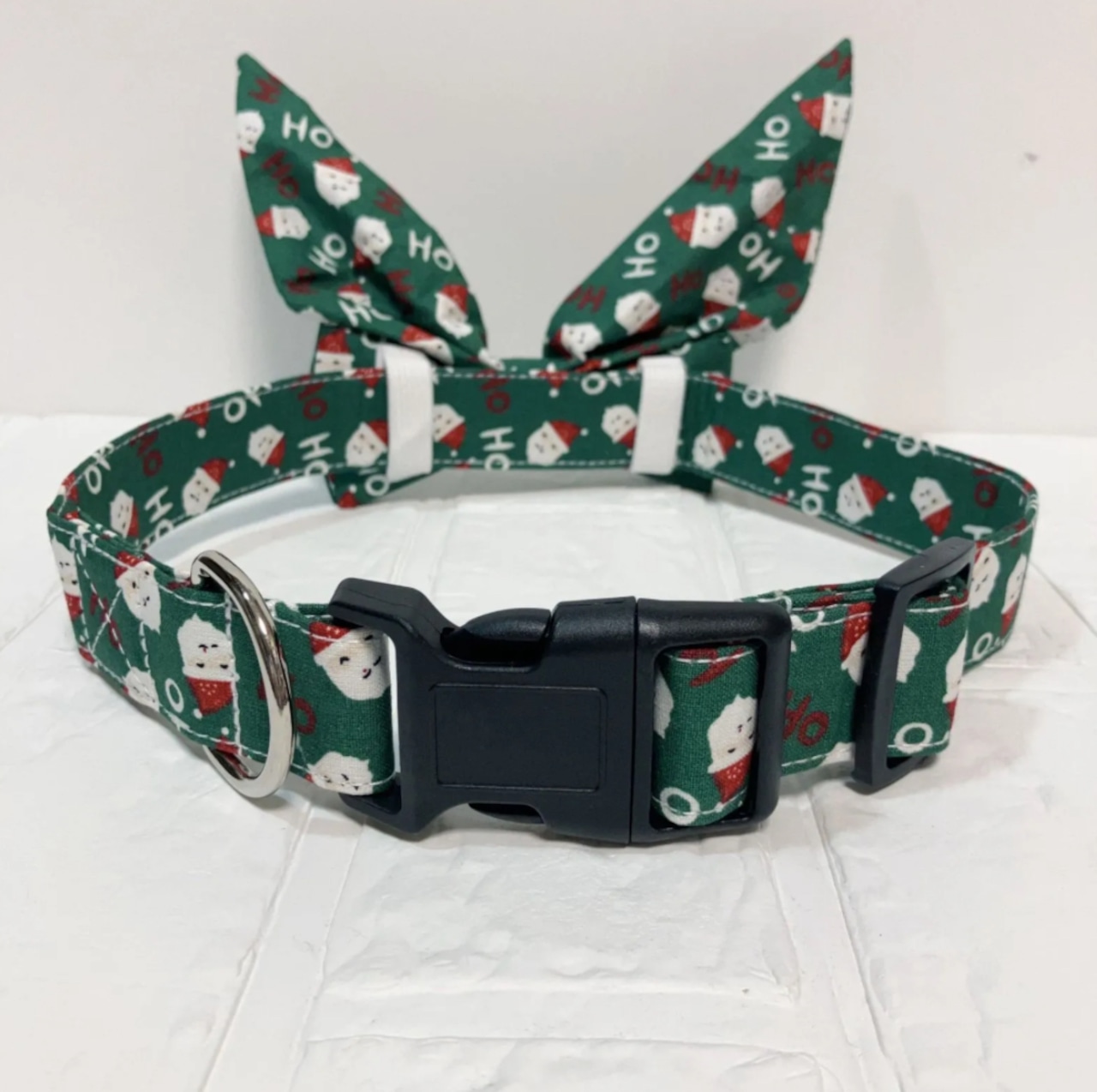 【送料無料】大型犬、中型犬用 ホリデー柄 蝶ネクタイ 首輪 サンタクロース