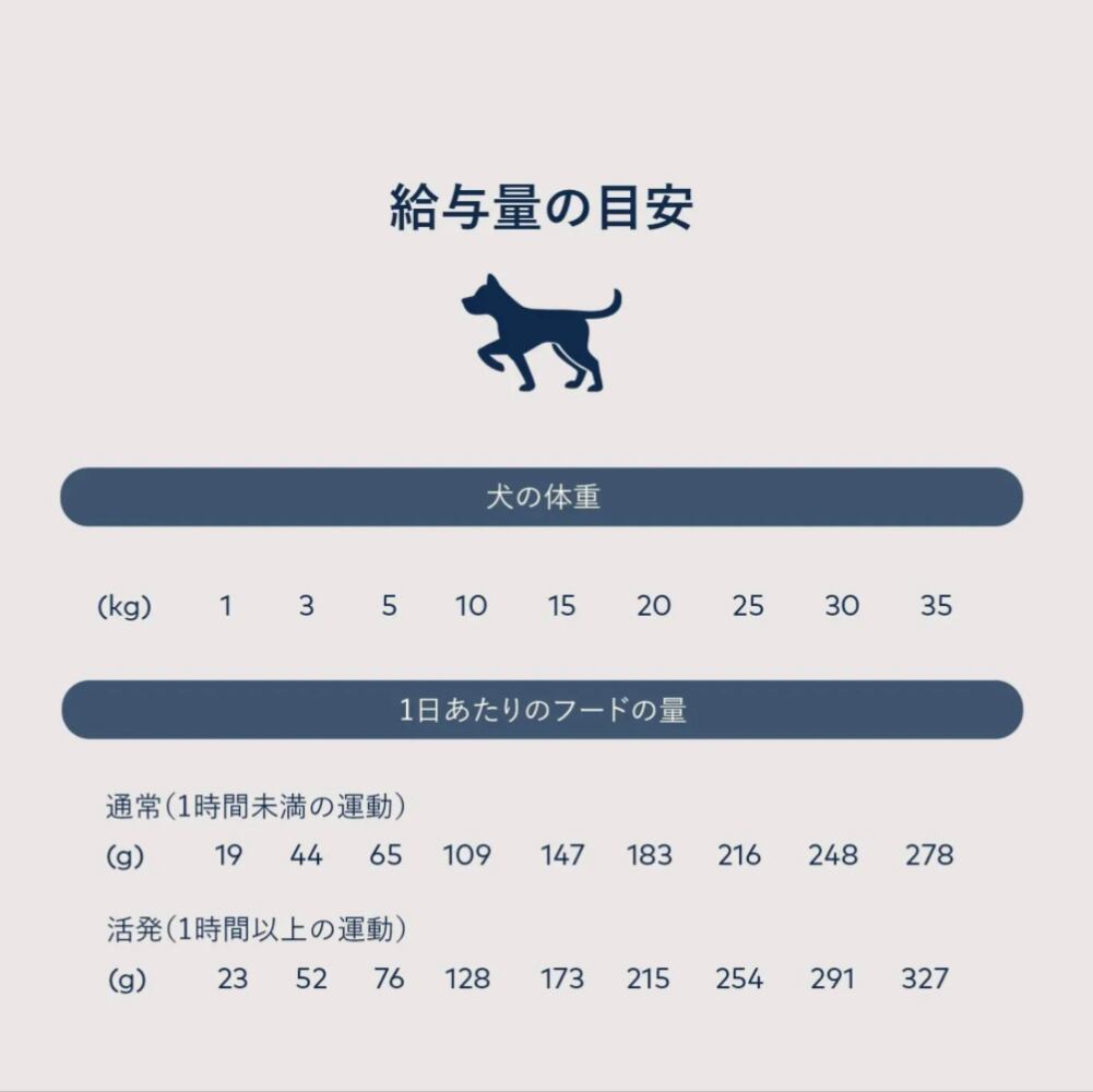 粗タンパク質(以上)34%,粗脂肪(以上)28%,粗繊維(以下)4%,水分(以下)12%,灰分(以下)12%,オメガ3脂肪酸(以上)0.5%,コンドロイチン硫酸(以上)2000 mg/kg,グルコサミン(以上)800 mg/kg