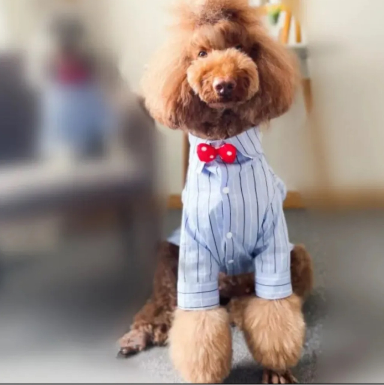 【送料無料】ペット用 大型犬用 ペット服 可愛い 蝶ネクタイ付き ボーダー シャツ