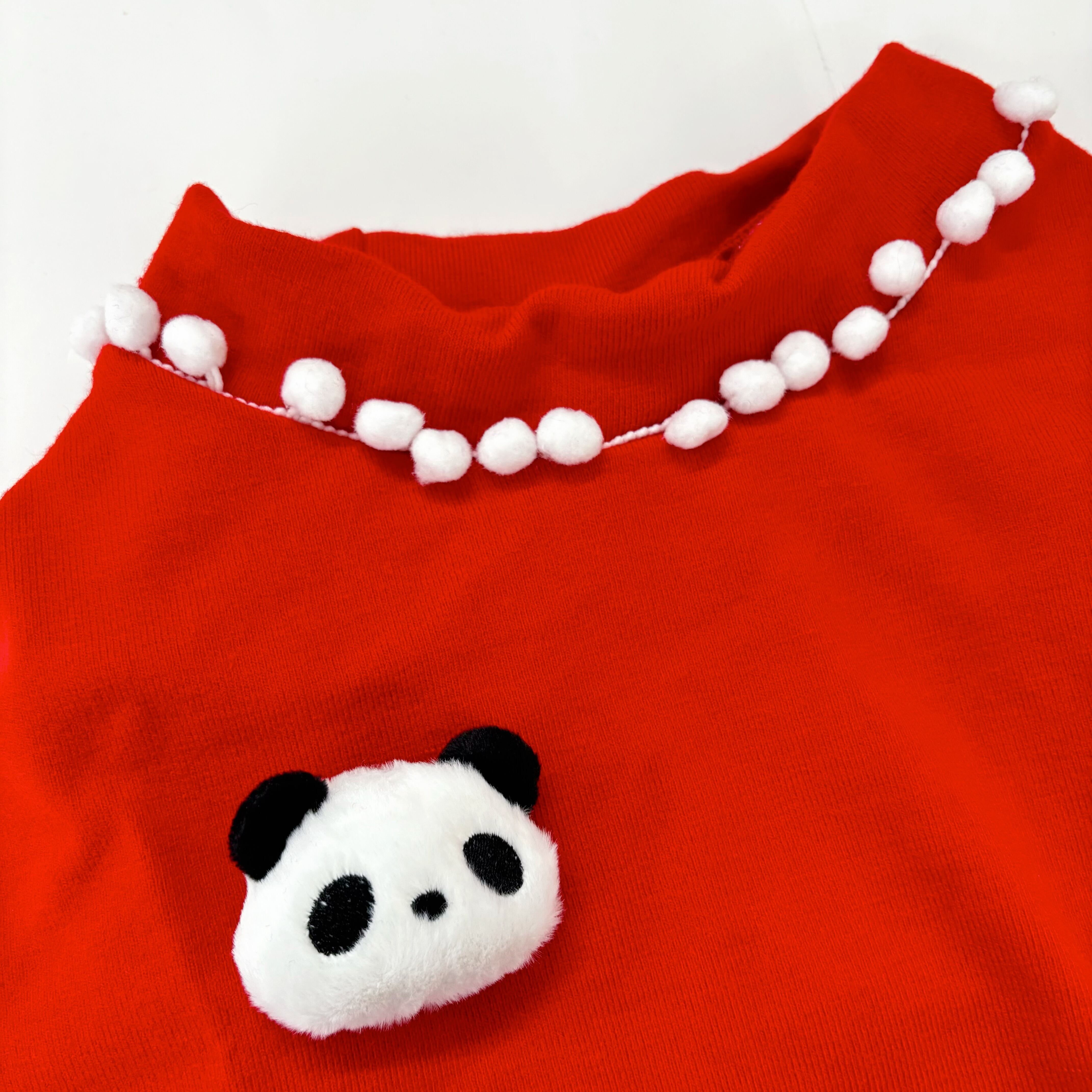 【ペット用】大型犬用 犬服 可愛い 赤色 ニット パンダ ブローチ付き