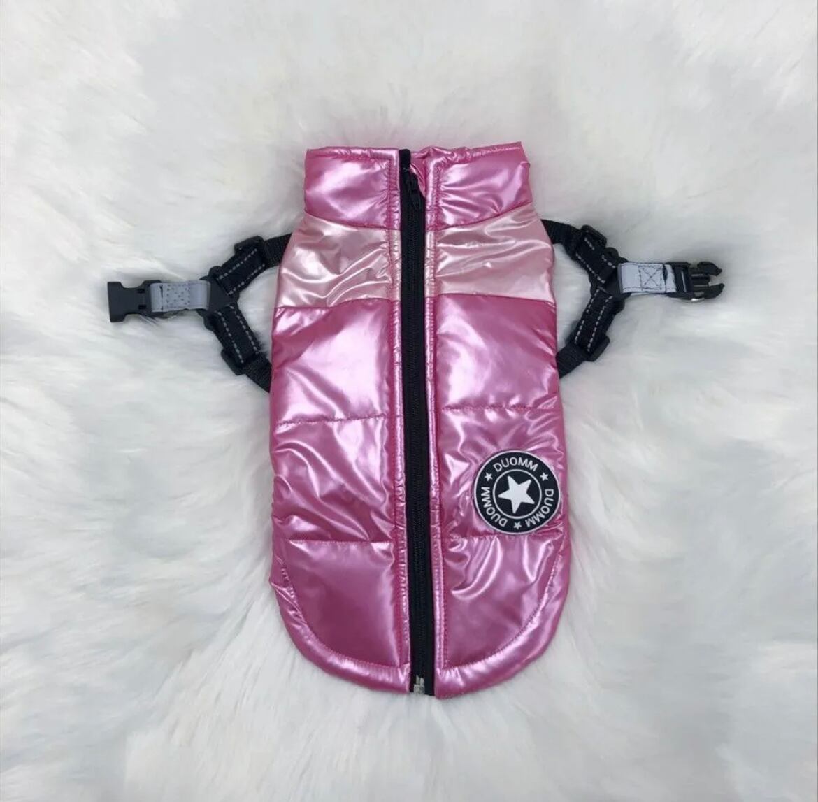 【送料無料】FLUFFYPET ペット用 小型犬用 中棉 ベスト 撥水光沢 コーティング 反射材付き Mサイズ
