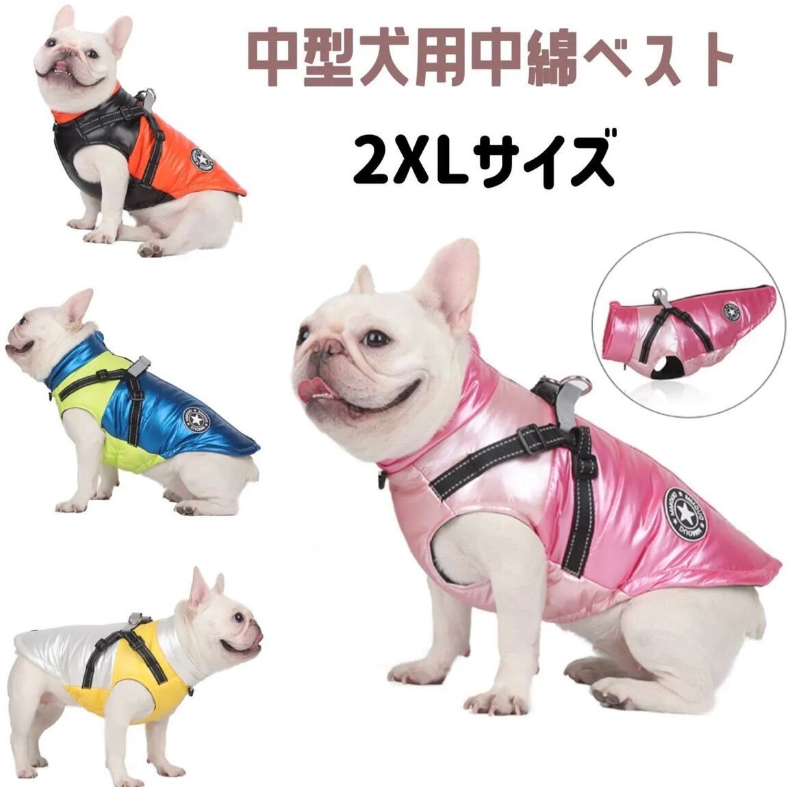 【送料無料】FLUFFYPET ペット用 中型犬用 中棉ベスト 撥水光沢 コーティング 反射材付き 2XL