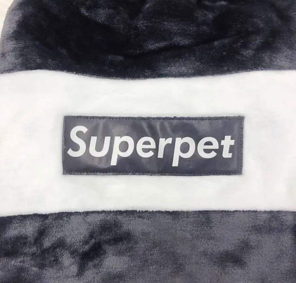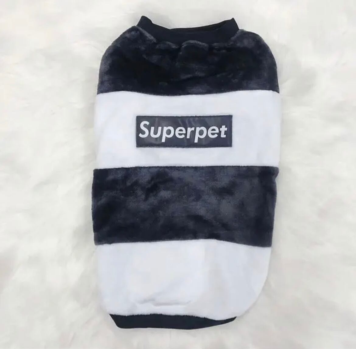 白黒で背中にスーパーペットの英語ロゴ