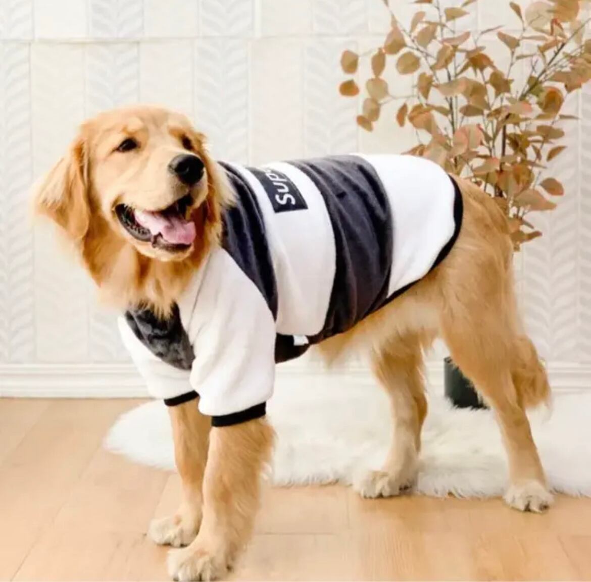 【送料無料】FLUFFYPET ペット用 大型犬用 ペット服 シェルパフリース 白黒 トレーナー(5XL,6XL、7XL)