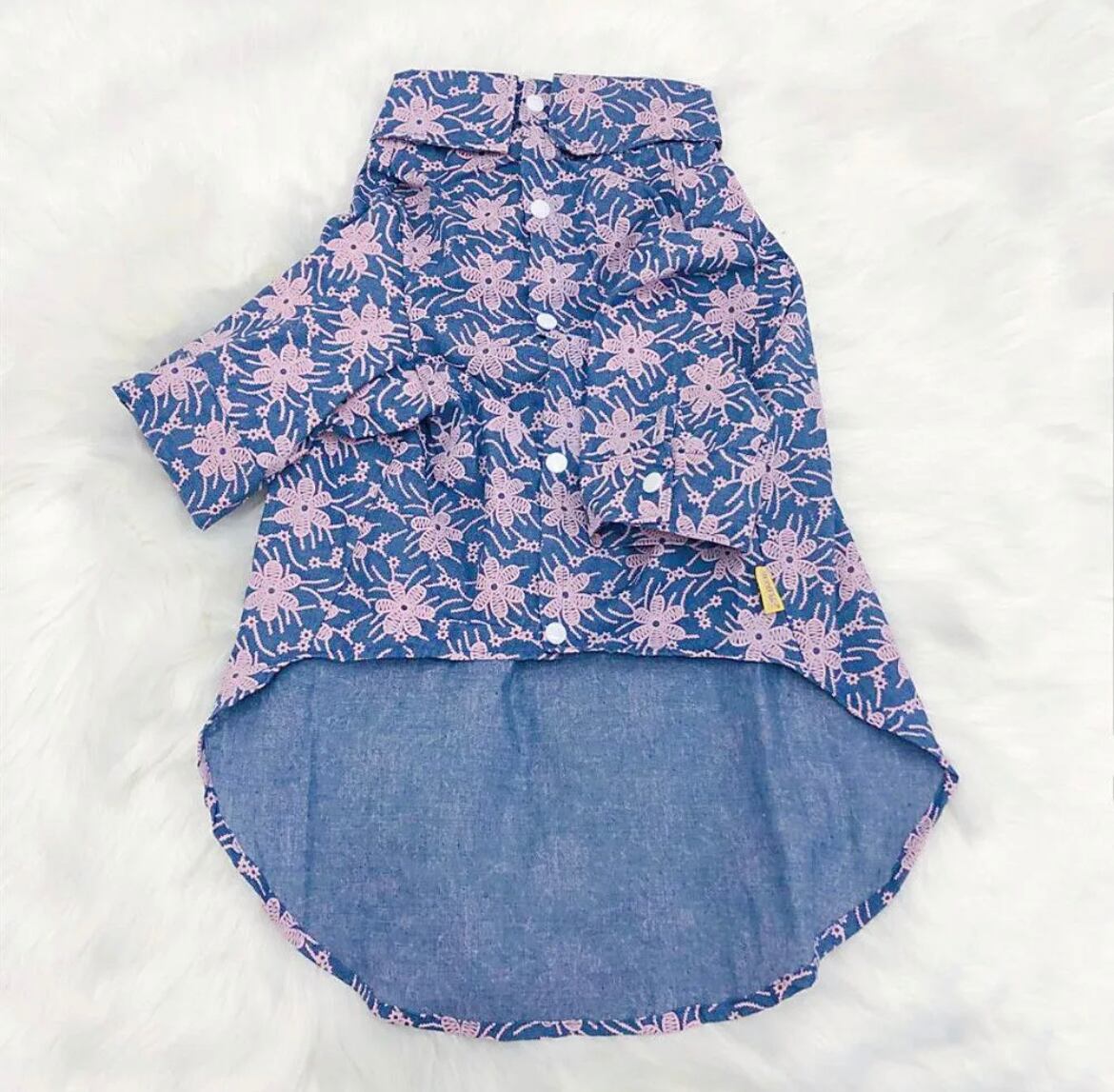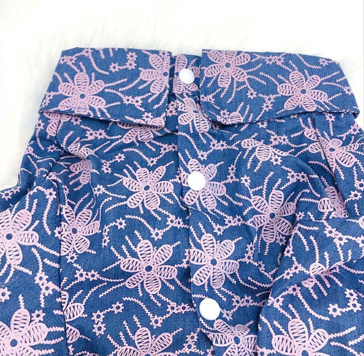 #大型犬服 #ペット服 #デニム #シャツ #総柄 #花柄