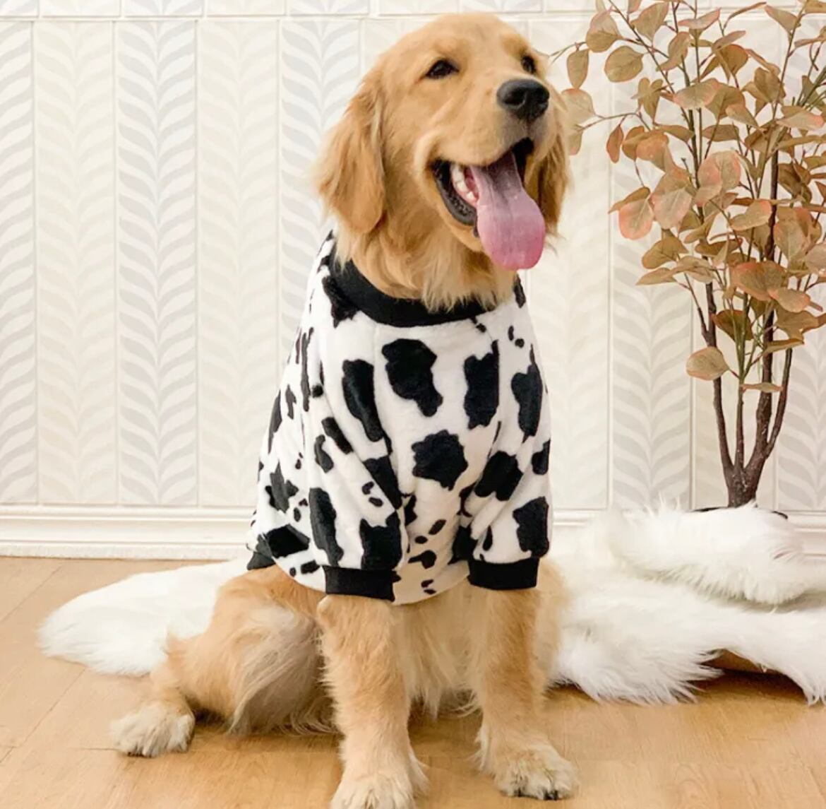 【送料無料】ペット用 大型犬用 犬服 カウ柄 秋冬 もこもこ ドッグウェア
