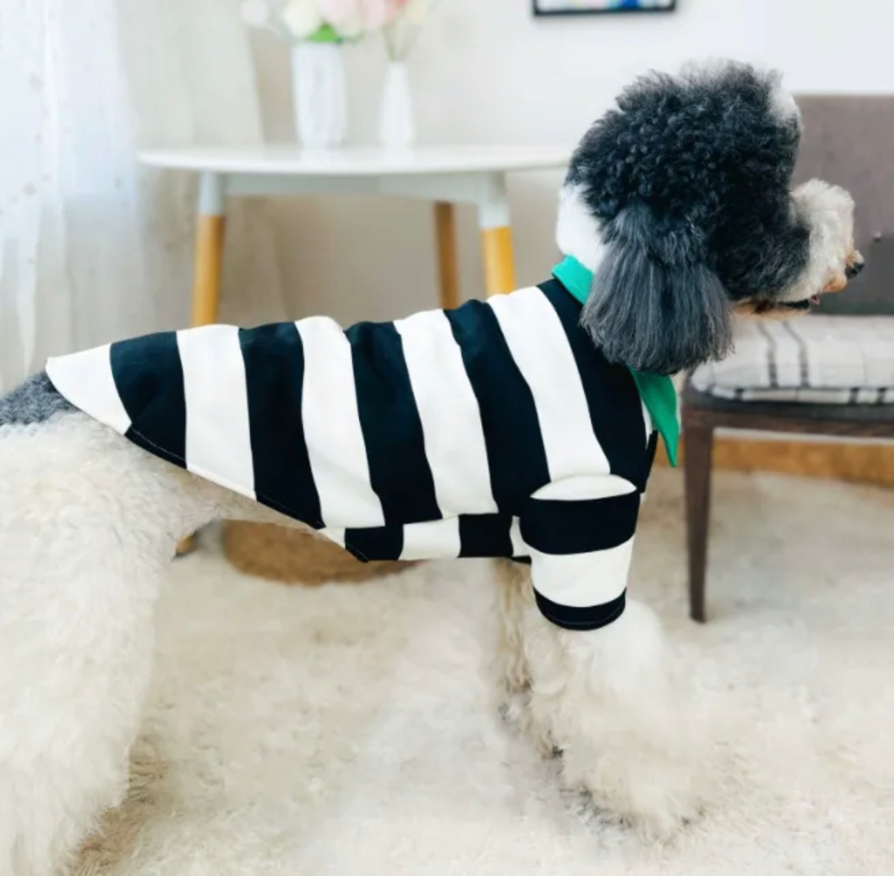 【送料無料】ペット用大型犬用 犬服 冬用 高級感厚手 裏起毛 韓国風 ボーダー襟シャツ
