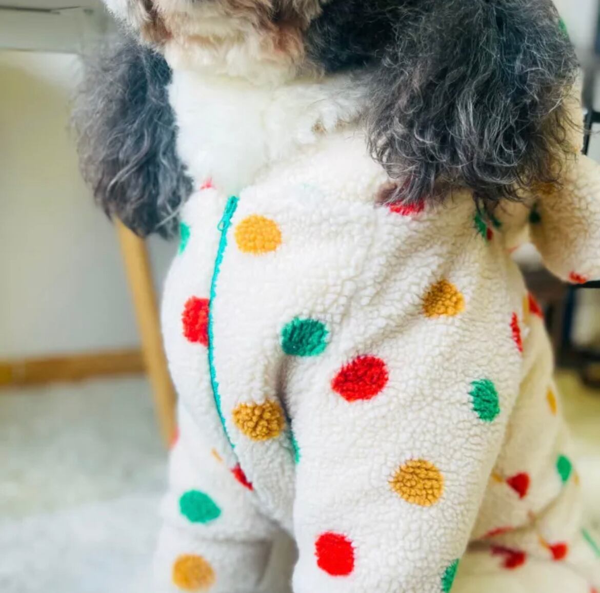 【送料無料】ペット用 大型犬用 犬服 冬用 厚手 カラフル水玉柄 両面ボア なりきりパーカー
