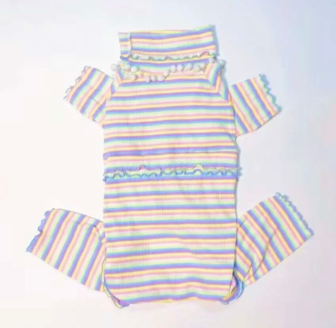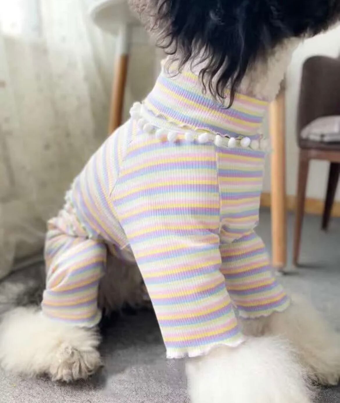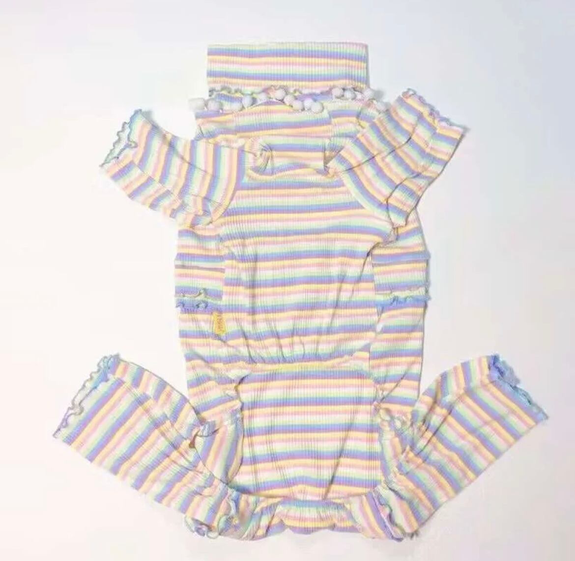 【送料無料】ペット用 大型犬用 犬服 可愛い マルチボーダー柄 つなぎ ボディスーツ