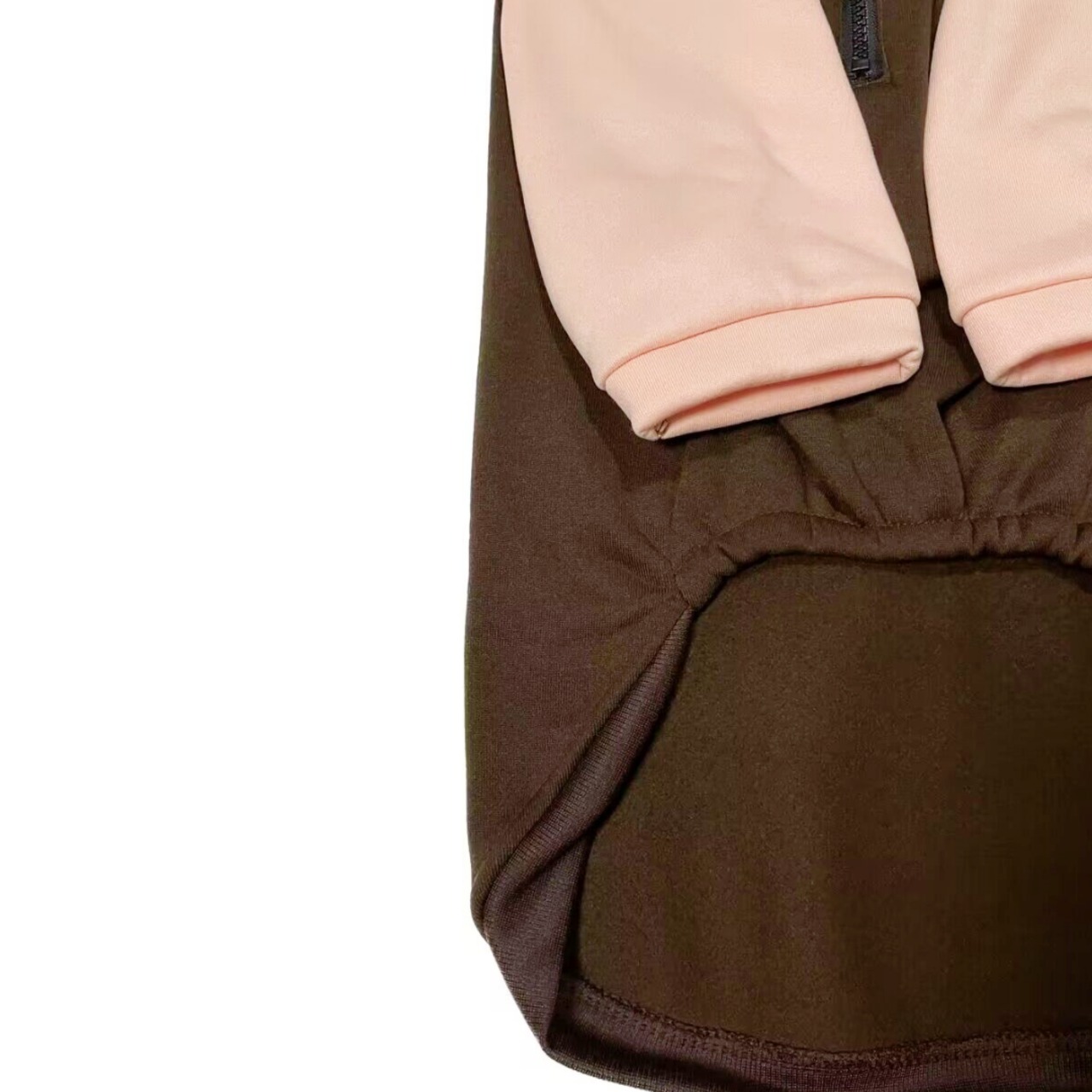 【送料無料】ペット用 大型犬用 犬服 冬用 裏起毛 厚手 パーカー ブラウン&ピンク