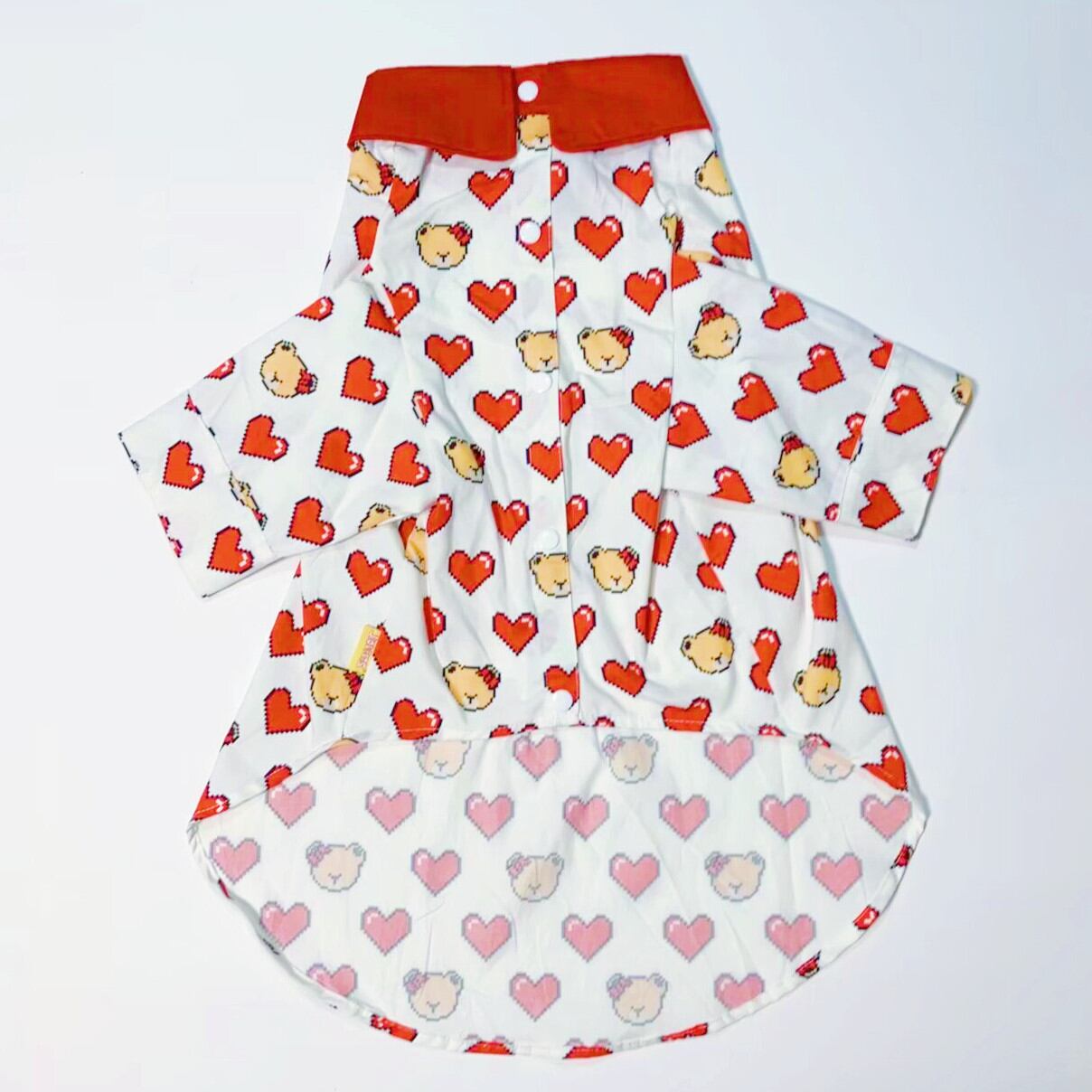 【送料無料】FLUFFYPET大型犬用 犬服 純綿生地 ハート&熊ちゃん総柄 シャツ(5XL,6XL)