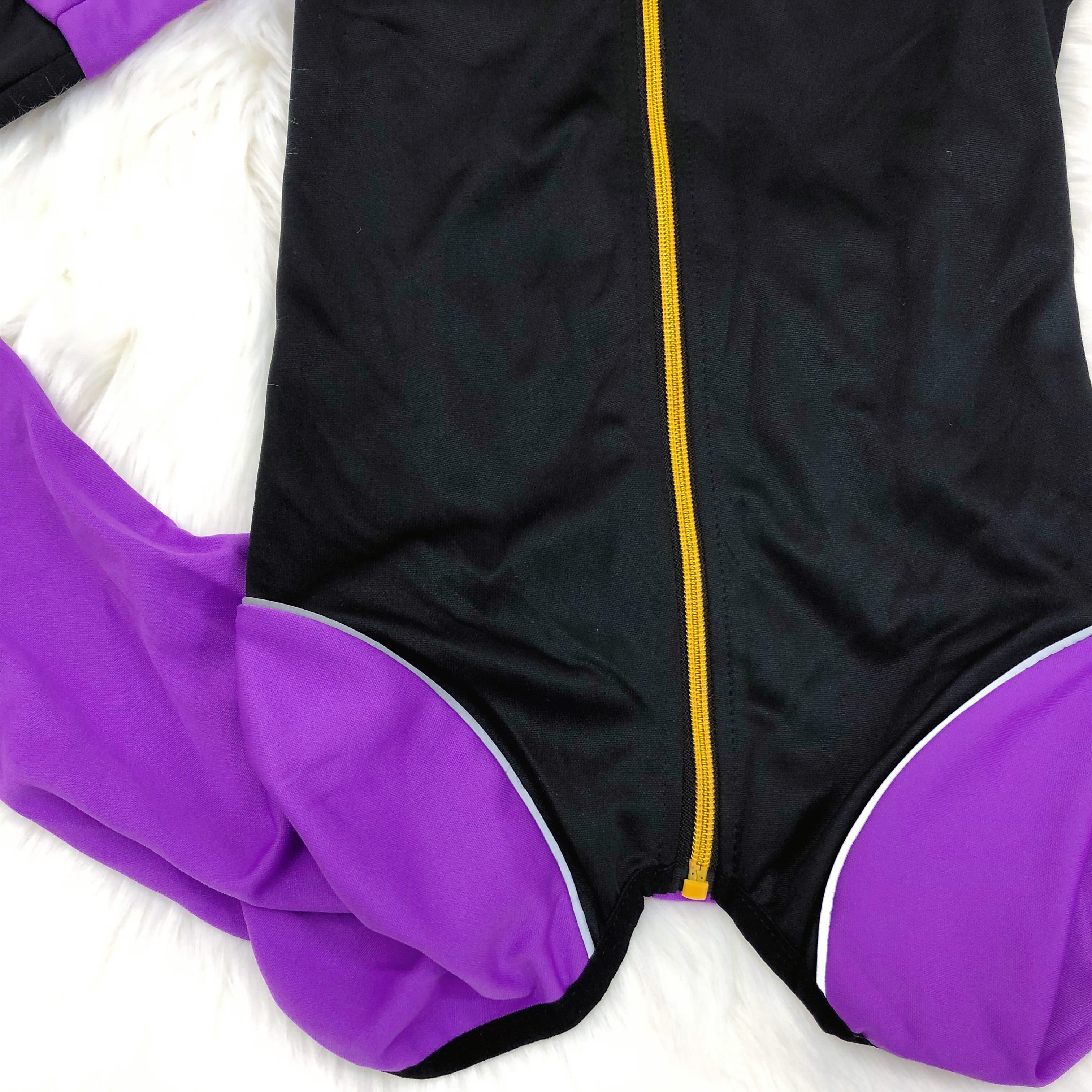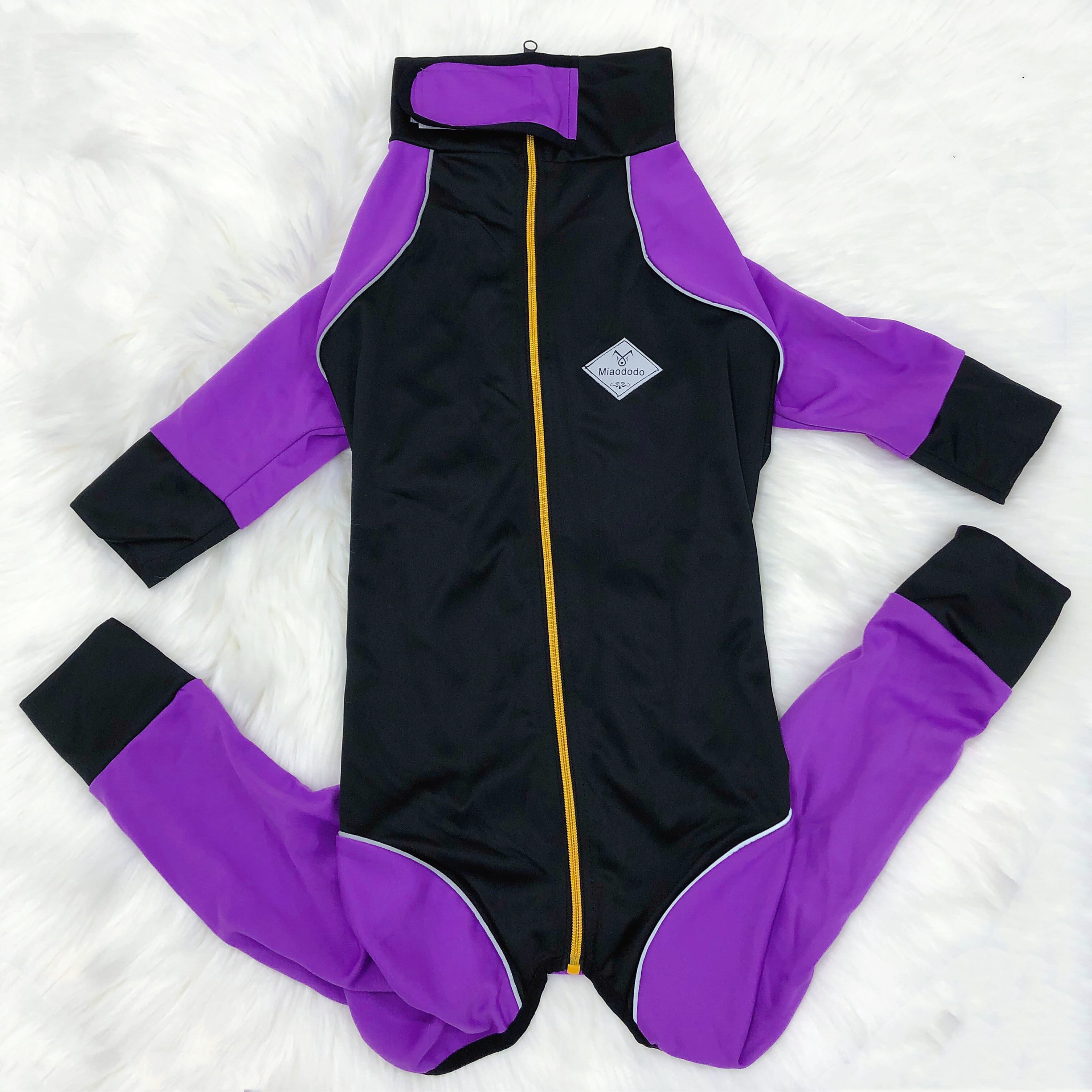 【ペット用】大型犬用 犬服 ボディスーツ 毛落ち 雪遊び 汚れ防止 紫x黒(5XL,6XL)